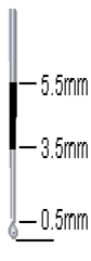 Зонд ВОЗ – имеет шарик на конце для усиления тактильной чувствительности и снижения риска травмы мягких тканей. Широкое черное кольцо, определяющее глубину зондирования от 3,5 мм до 5,5 мм.